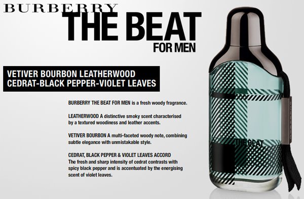 Słodkie cytrusy (źródło podaje cedrat) z początku, doprawione pieprzem w sercu z zielonymi akcentami wetiweru i liści fiołka oraz nowoczesny drzewno-piżmowy finisz. Tzw. akord drzewno-skórzany w bazie zapachu wydaje mi się być mieszanką cedrowych wiórków, białych piżm i syntetycznej ambry. The Beat wykazuje bardzo harmonijną ewolucję, na każdy jej etapie pokazując coś charakterystycznego. Olivier Polge i Domitille Berthier stworzyli na wskroś współczesne, bardzo sympatyczne i jednocześnie charakterystyczne perfumy, które dobrze wpisują się w styl Burberry i świetnie uzupełniają ofertę ogólnie dobrych zapachów tej marki. W każdym razi nie zaniżają średniej. Pieprz i specyficzna cedrowa nuta niewątpliwie dodają charakteru tej kompozycji, dzięki czemu The Beat nie jest kolejnym nijakim mainstreamowym świeżakiem, co zaliczam mu na duży plus. Jest też przykładem, jak użyć trudnego składnika, jakim jest czarny pieprz, w udany sposób (w przeciwieństwie to BANG! Jacobsa).