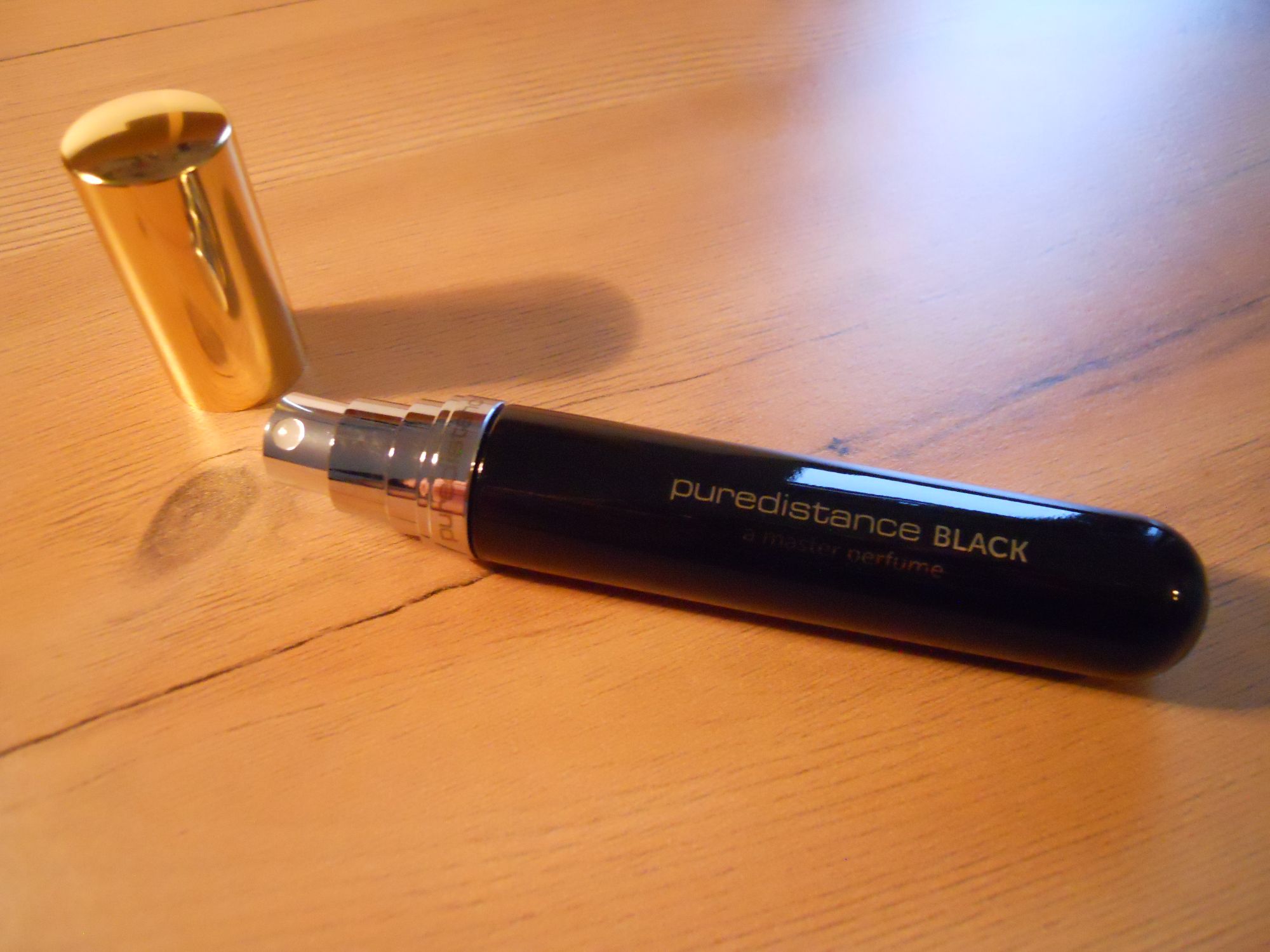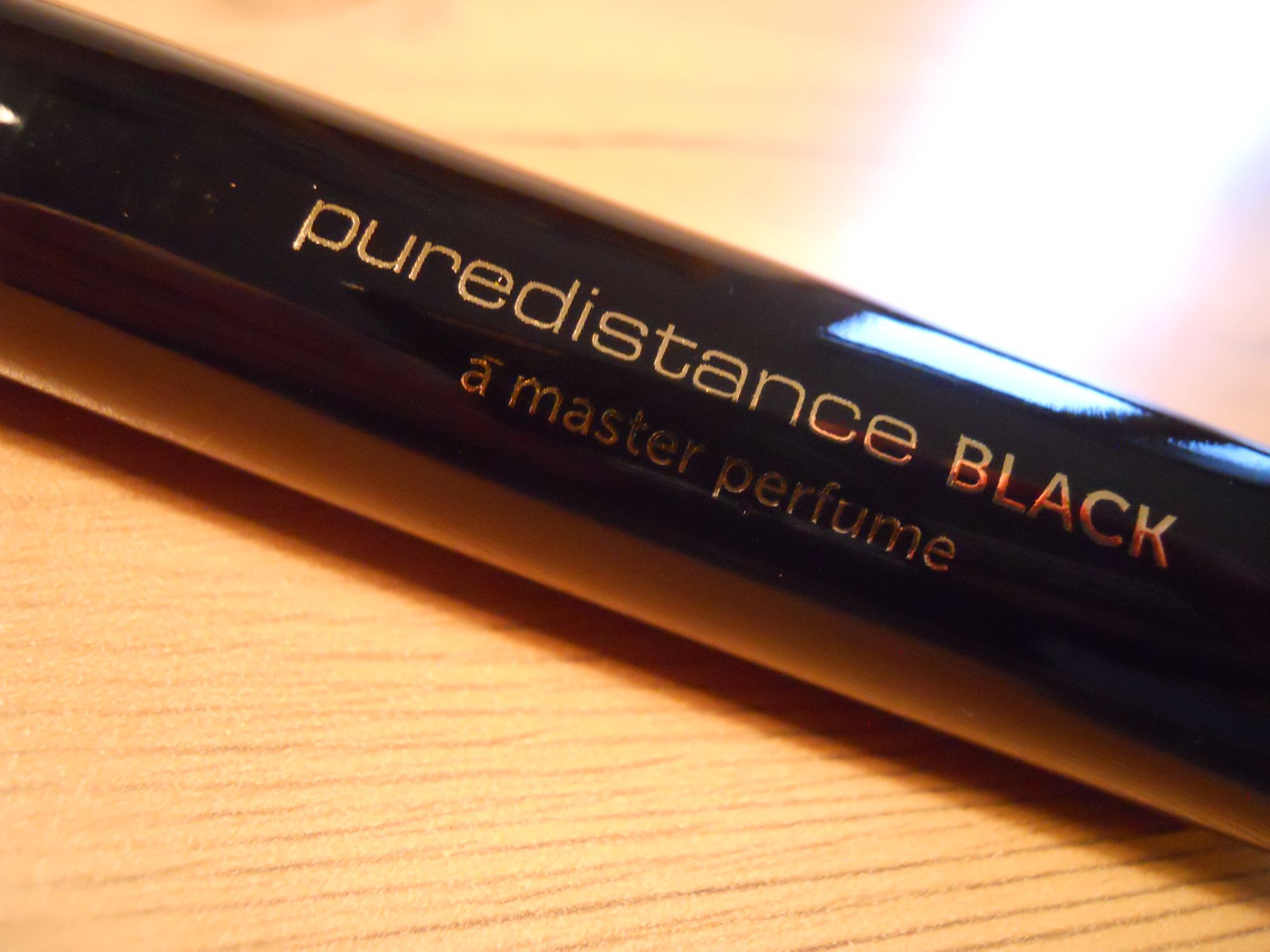 Osobną i wartą uwagi częścią doświadczania perfum Puredistance jest ich niezwykłe, luksusowe opakowanie, do którego marka ta przywiązuje szczególną wagę. Poczynając od pięknie zawiązanej na zewnętrznym pudełku wstęgi, poprzez eleganckie, wykonane z bardzo grubej tektury pudełko-futerał (wyściełany miękkim materiałem), w którym – obok flakonu – znajdziemy certyfikat autentyczności z własnoręcznym podpisem Jana Ewouda Vosa, aż po niezwykły, sygnaturowy flakon. Masywny, czarny, z masywną metalową z zatyczką w złotym kolorze, doskonale wykończony, w kształcie próbówki, z nazwą nadrukowaną złotymi literami i dodatkowo na znajdującym się pod zatyczką pierścieniu. Poniżej kilka fotografii obrazujących flakon i sposób jego opakowania: