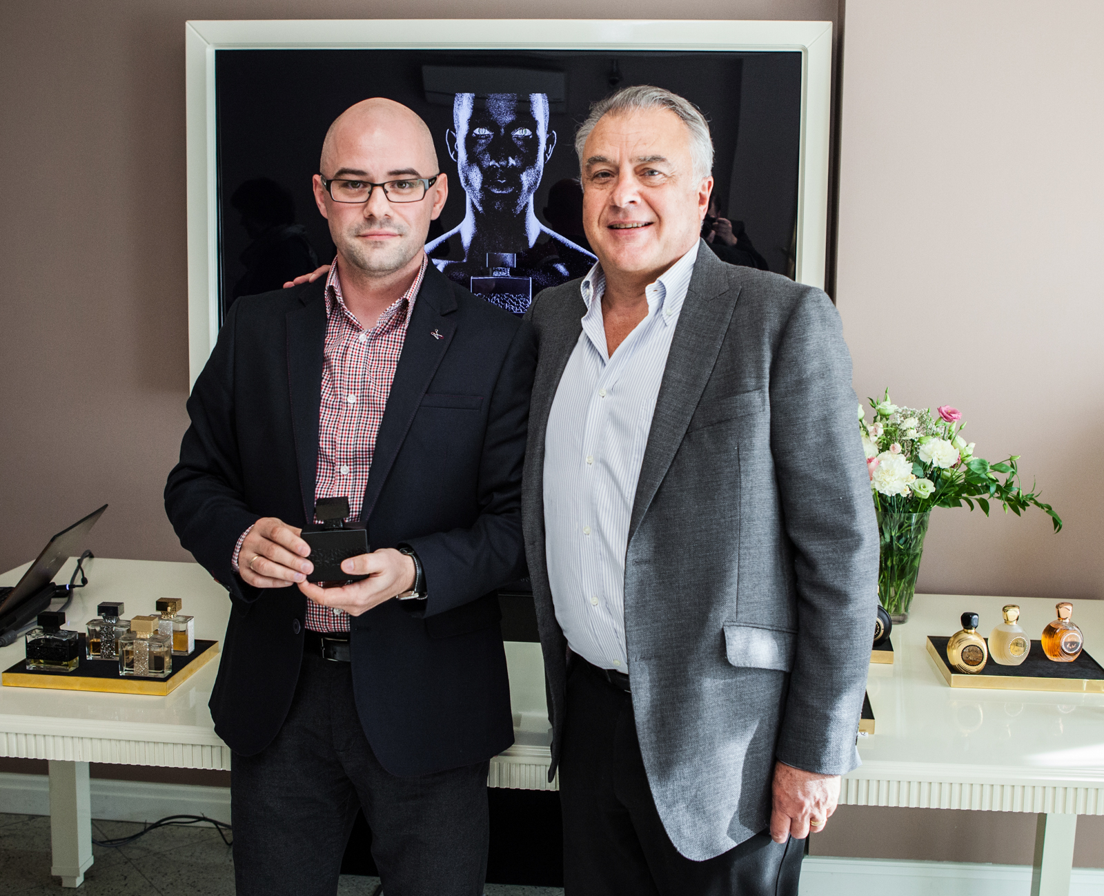 27.10.2015 Dom Perfumeryjny Quality Missala na warszawskim Bemowie gościł twórców marki M.Micallef – Martine Micallef i Geoffreya Nejmana. Pretekstem do zorganizowania spotkania z przedstawicielami mediów była premiera nowego męskiego pachnidła AKOWA, którego recenzję zdążyłem już napisać kilkanaście dni wcześniej. Zanim jednak Geoffrey Nejman przedstawił nam bliżej swe najmłodsze zapachowe dziecko, zaprezentował pokrótce historię marki. Muszę przyznać, że zaimponowało mi to, w jaki sposób ten zafascynowany perfumami duet artystki i finansisty (zapałał miłością do perfum podczas finansowego doradzania jednej z firm z branży perfumiarskiej w Grasse) postawił wszystko na jedną kartę i kierując się pasją połączoną z pracowitością i talentem, na przestrzeni niemal 20 lat zbudował jedną z najmocniejszych luksusowych marek perfumowych na świecie. Zaczynali od skromnej pracowni zlokalizowanej w ich domu w Grasse. Pierwsze flakony Geoffrey sprzedawał jeżdżąc od domu do domu rowerem (później małym Peugeotem). Przełomowym momentem była handlowa wizyta Nejmana w jego rodzinnych Niemczech (co ciekawe, ojciec Nejmana urodził się w Zduńskiej Woli). Tamtejszy rynek okazał się spragniony doskonałej jakości perfum, jakie od początku oferowali. Dziś w tym samym Grasse stoi fabryka o łącznej powierzchni 2000 m2, zaś perfumy M.Micallef dostępne są w 50 krajach na całym świecie. Imponujące. Mimo takiego rozwoju wiele operacji wciąż wykonuje się tu ręcznie, tak jak na samym początku w sławnej piwnicy.