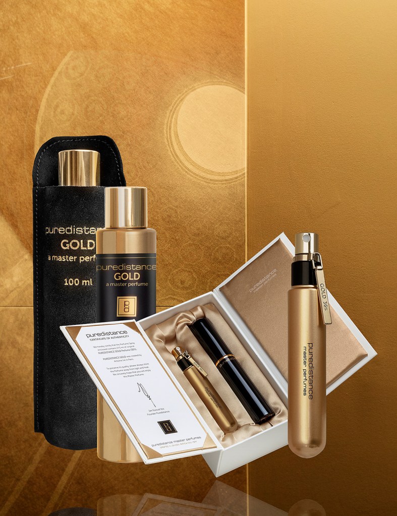 Jan Ewoud Vos rozpoczął pracę nad tymi perfumami już w marcu 2017. Skontaktował się w tym celu ze znanym perfumiarzem, który wszakże nigdy wcześniej nie pracował dla Puredistance. Proces komponowania Gold trwał ponad rok, jednak ostatecznie żadna z proponowanych wersji nie przekonała Jana. Zdecydował on o zaprzestaniu prac i wrócił do tematu po kilku miesiącach, w październiku 2018 – tym razem w towarzystwie sprawdzonego już wielokrotnie perfumiarza Antoine’ Lie’a (ma on już na swym koncie kilka doskonałych pachnideł Puredistance – wspominane Black, White, AENOTUS, a także Warszawa). Tym razem prace potoczyły się bardzo szybko i już w czerwcu 2019 zapach był gotowy.
